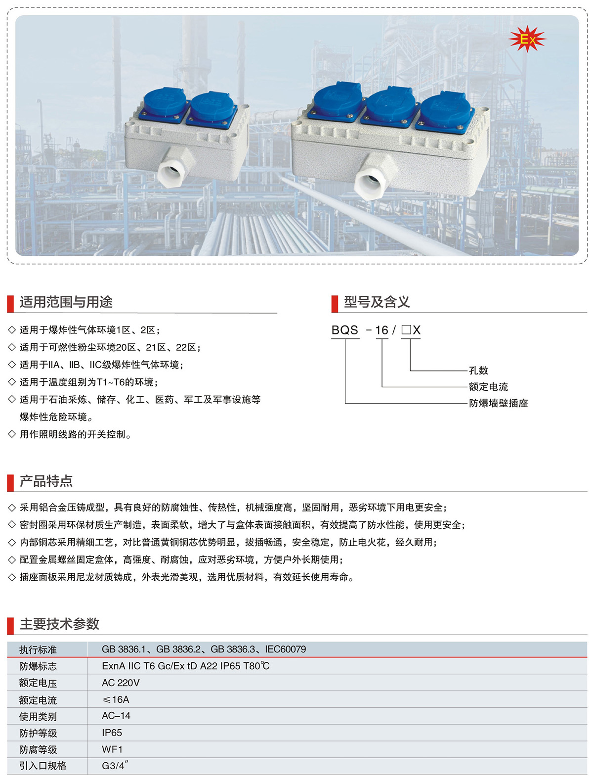 BXS系列防爆检修电源插座箱(IIB、IIC、Ex tD)