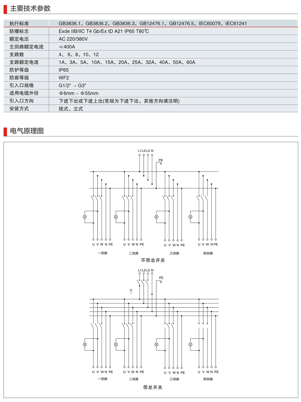 BXM(D)8030系列防爆防腐照明(动力)配电箱(IIC、Ex tD)